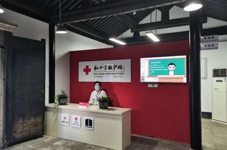 此外,救護(hù)站內(nèi)還設(shè)置救護(hù)宣傳冊、紅十字多媒體宣傳,給游客提供全方位安全保障的同時(shí),營造了濃厚的紅十字文化氛圍。