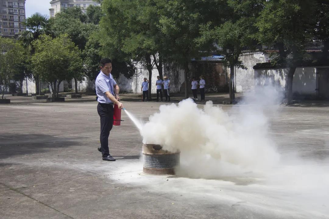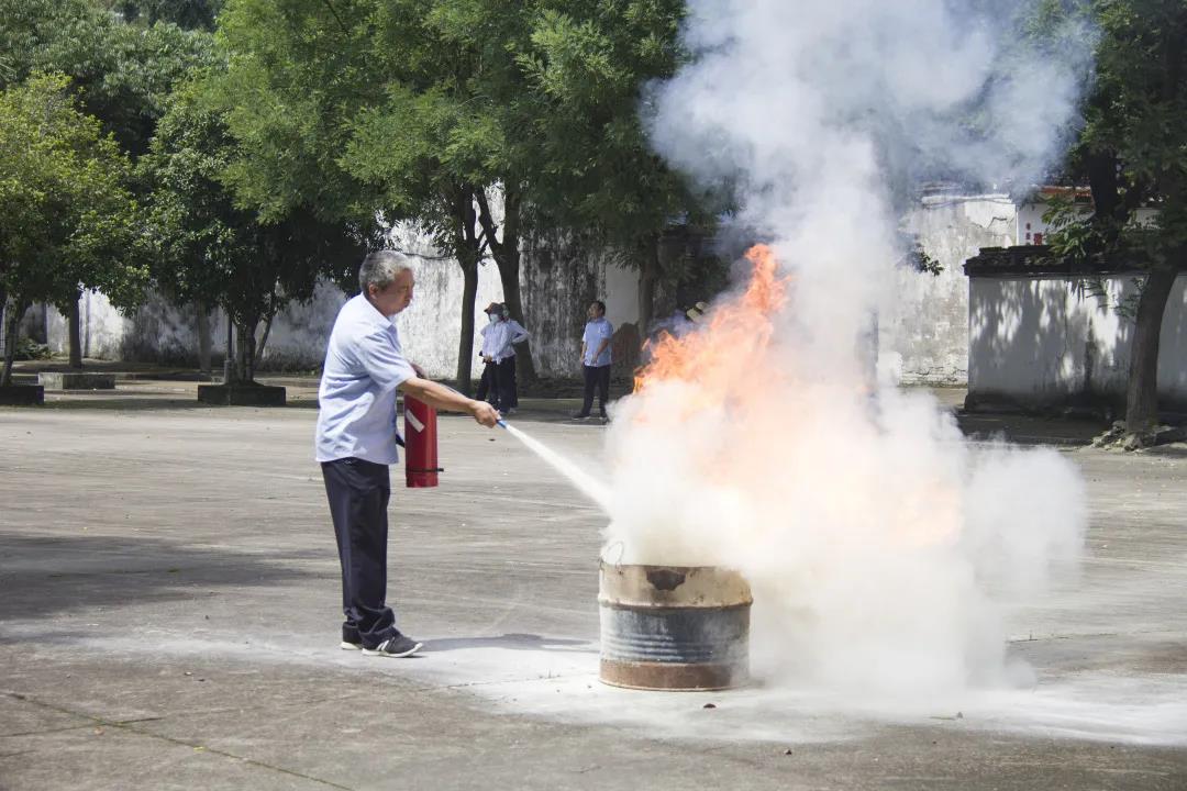 3.使用前,先把滅火器上下顛倒幾次,使筒內(nèi)干粉松動(dòng)。