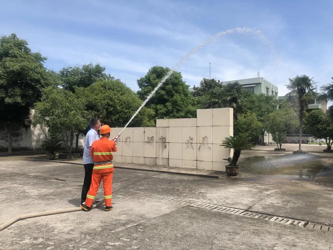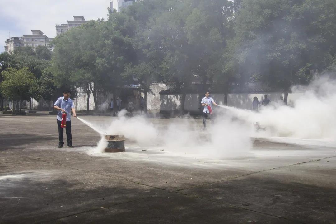 2.在距離起火點(diǎn)5米左右處,放下滅火器。在室外使用時(shí),應(yīng)占據(jù)上風(fēng)方向。