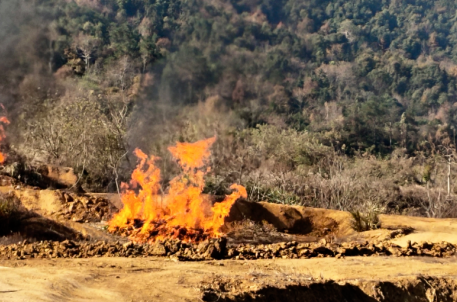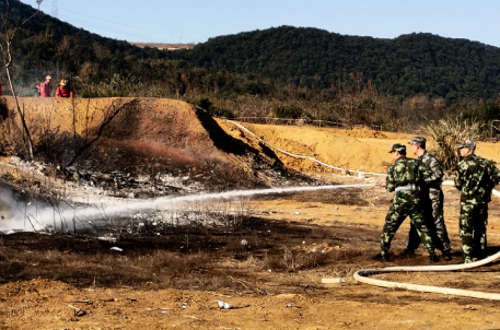 演練模擬突發的山火沿著山腳開始迅速蔓延,為了及時控制山火,蘭亭街道森林防火總指揮孫潔立即下達指令,要求蘭亭街道森林消防支隊馬上前往著火點撲滅山火。消防隊員們首先采用干粉彈對火勢進行控制,然后立馬由人工組手持滅火拍、風力滅火機等設備,對剩余的明火進行了撲滅。大火撲滅后,消防人員再次“引水滅火”,并留足看守人員,防止出現死灰復燃。