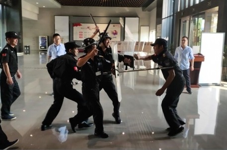 培訓老師簡要介紹了反恐防暴的基本知識,并強調在工作中一定要堅持“防范為主,安全第一,熟悉預案,正確處置”的要求,以保護人身安全為第一原則。緊接著,老師就防爆盾、鋼叉、防爆毯等使用方法,作了具體的講解,并親身示范給參與培訓的人員。示范過程中,他還講解了常見的恐怖襲擊手段、反恐措施以及如何識別恐怖分子,遇到危險如何施救、自救等知識。最后,在場的保安人員在老師的指導下參與了相關防暴器材的使用演練。