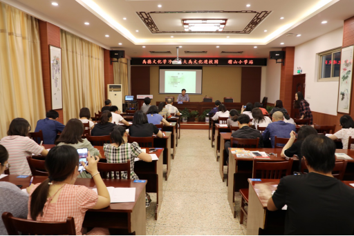 本次活動(dòng)中,我們還很榮幸地邀請到紹興文理學(xué)院周一農(nóng)教授為稽山小學(xué)的全體教工帶來一場禹文化的深度講座——《沿著大禹的足跡》。