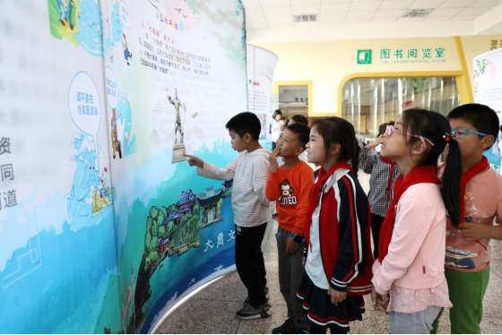大禹的治水功績,對中華民族發(fā)展有著深遠(yuǎn)的影響。根據(jù)新時(shí)代的治水任務(wù),此次展陳特別設(shè)計(jì)了“五水共治”這一板塊,將護(hù)水、愛水的思想融入中小學(xué)課外知識(shí)拓展中,治水知識(shí)從娃娃抓起。