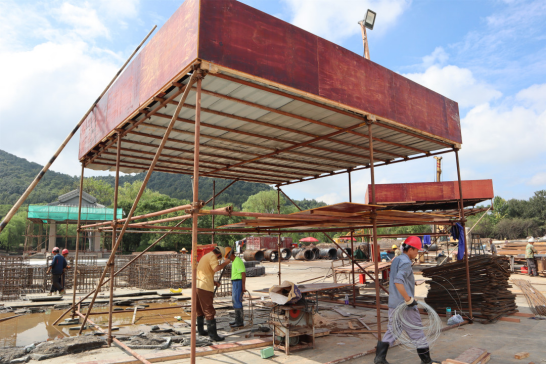 為繼承前人修繕禹陵之傳統,集中力量完成重點工程項目,近日,景區入口至祭禹廣場區域的施工建設已如火如荼地展開。