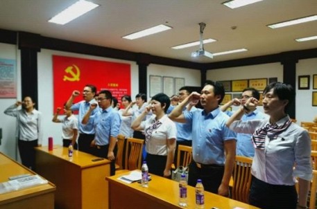 “我宣誓,在崗位上,嚴格遵守黨紀國法,遵守各項規章制度,堅決執行組織的決定,帶頭廉潔自律, 反對不正之風,正確行使權力,自覺接受組織和群眾監督, 忠實履行職責, 為黨的事業不懈奮斗!”