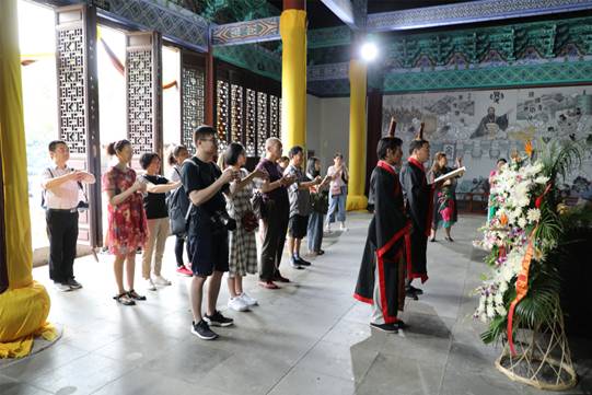 享殿之中,游客們肅立雅靜,在司儀的帶領下祭祀禹王,感受中華祭祀文化的魅力,祈福納祥。