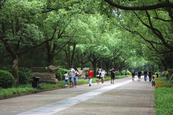 長長的神道兩側,綠植茂密,林木蒼翠。行走其間,濃蔭蔽日,在這暑熱初至的天氣中,令人頓生清凈、涼爽。