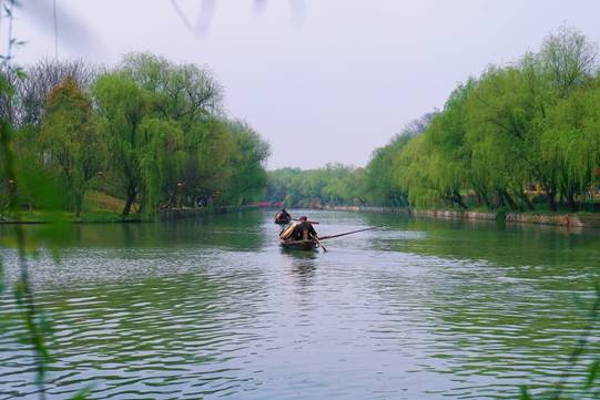 微風燕子斜。遠方,青山含黛,郁郁蔥蔥,萬物生長正好;近處,河流淙淙,映帶左右,偶有烏篷劃過。