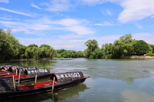 禹池之上,雖無熱鬧的龍舟競渡,卻有稽山的翩翩烏篷。端坐于烏篷船頭,老船工那劃動的船槳,搖曳了初夏的清風,時光的流動,在此仿佛放緩了一拍。