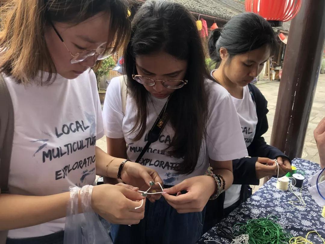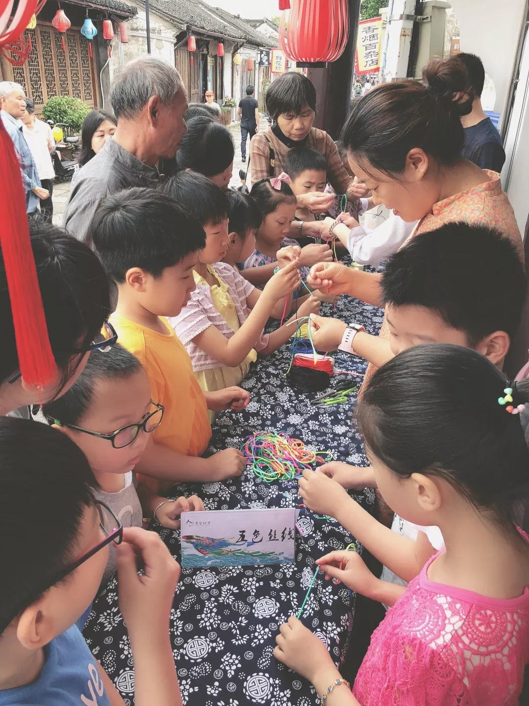 五色絲線,由紅、黃、黑、綠、白等五個顏色組成,古代也叫五彩長命縷。系五色絲線是端午節不可缺少的部分,在端午節佩戴五色絲線以辟邪,帶來好運。絢麗的五彩絲線不一會兒在游客朋友們的手中被編織成一串串形式各樣的彩繩,精美又別致。