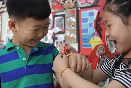 應(yīng)劭《風(fēng)俗通》記載:“五月五日,以五彩絲系臂,命人不病瘟”。系端午線為端午節(jié)的傳統(tǒng)習(xí)俗,其線顏色艷麗,有避邪驅(qū)蟲、防止五毒近身的功用。端午佳節(jié)期間,游客可憑票免費(fèi)換取五色彩線,編成繩結(jié)佩戴在自己身上或贈予親朋好友,祈愿身體健康,事事如意。
