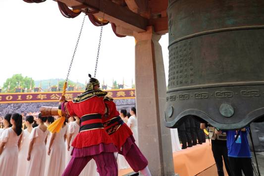 擊鼓三十四響,表達全國各省、市、自治區和香港、澳門特別行政區對先祖的緬懷;撞鐘十三響,象征十三億炎黃子孫對先祖的追思。