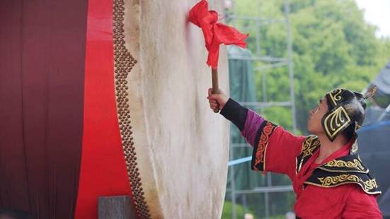 奏樂聲起,四位樂手手持長號連續吹響九聲,寓意禹定九州,每次持續五秒,寓意五音治國;民樂隊合奏祭祀主樂三分鐘,寓意生生不息。