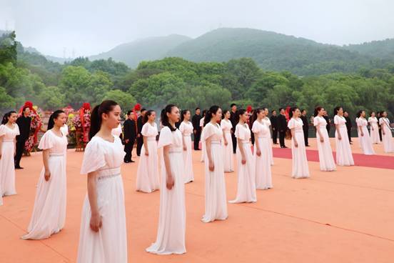 隨后,獻祭舞,配樂《大禹頌》,唱《大禹紀念歌》,贊美、頌揚流芳千古的禹功禹德。歌罷,莊嚴肅穆的公祭大禹陵典禮禮成。