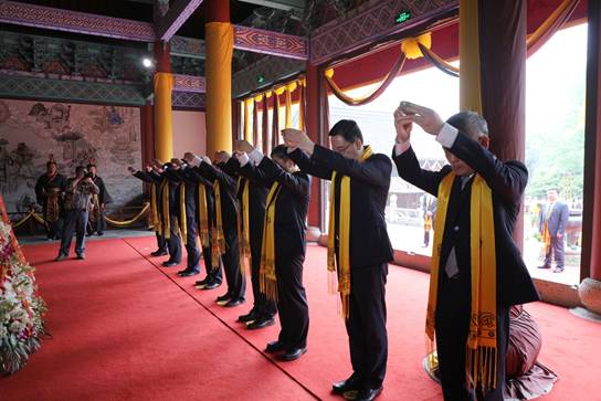 宣讀畢,全體參祭人員肅立,面向大禹陵鞠躬行禮,緬懷大禹治水的豐功偉績。