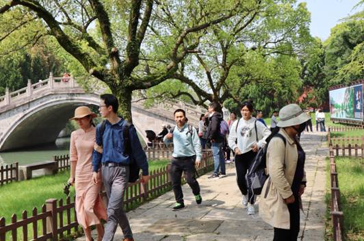 上午,已有不少游客步行進入禹陵,到古老的會稽山下踏青、賞春。