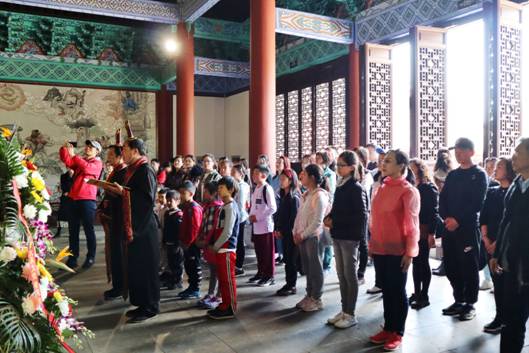 享殿中,游客朋友們跟隨著禮生的指引,虔誠地祭拜著華夏先祖大禹,恭敬地焚香、祈運,希望闔家美滿、國運昌盛。