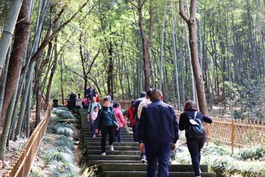 趁著陽光明媚,不少游客樂于三三五五地結伴成群,登高踏青,呼吸自然、新鮮的空氣。行走于石帆山山道之間,幽深寂靜、清美秀麗,令人身心俱靜,悠然自得。