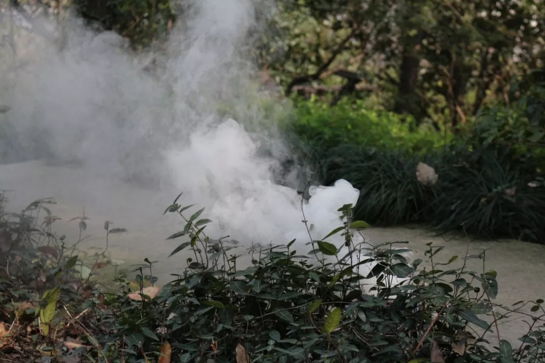 模擬游客在蕺山游步道游玩時,將未熄滅煙頭扔在游步道邊緣草叢中,引發山林火情。