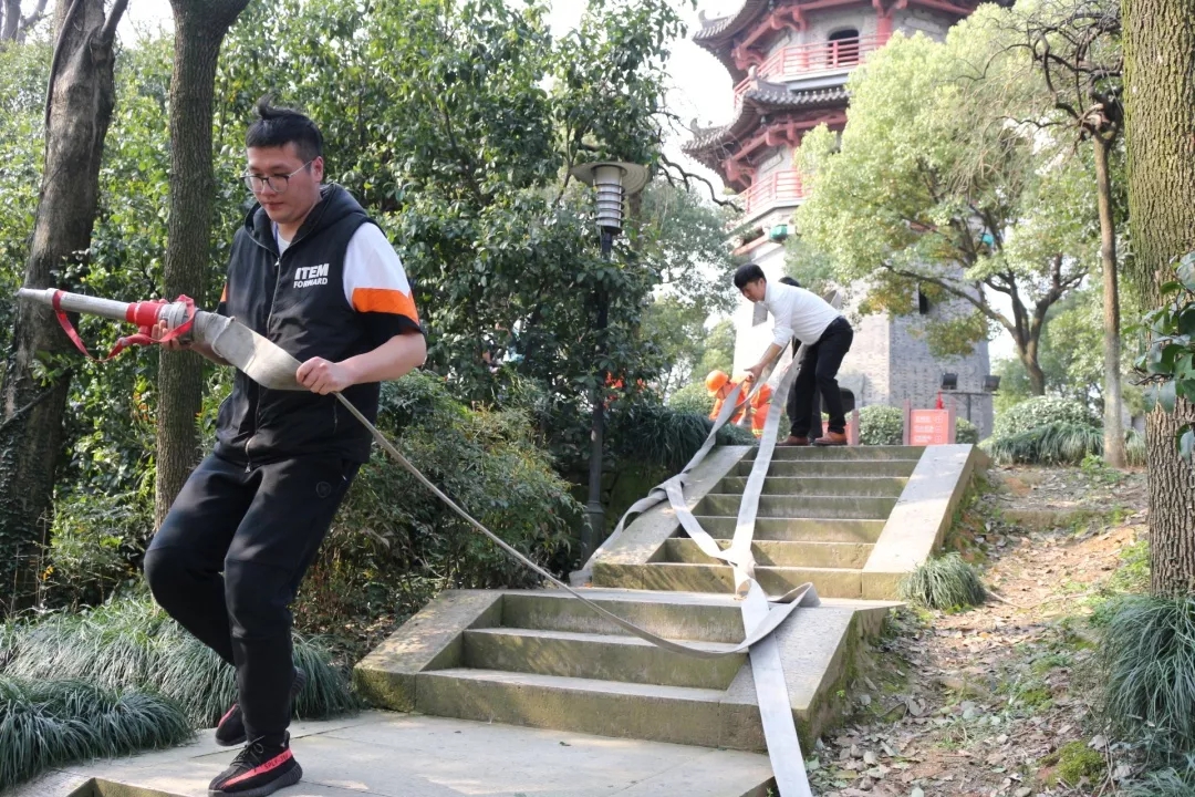 接到火情后,安全生產領導小組人員在第一時間作出應急響應并組織文筆塔和蕺山周邊游客有序撤離。