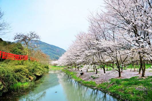 每逢櫻花盛開時節,漫山遍野的櫻花將宛委山麓點綴得粉嫩。沉浸于此,無人不心生浪漫.