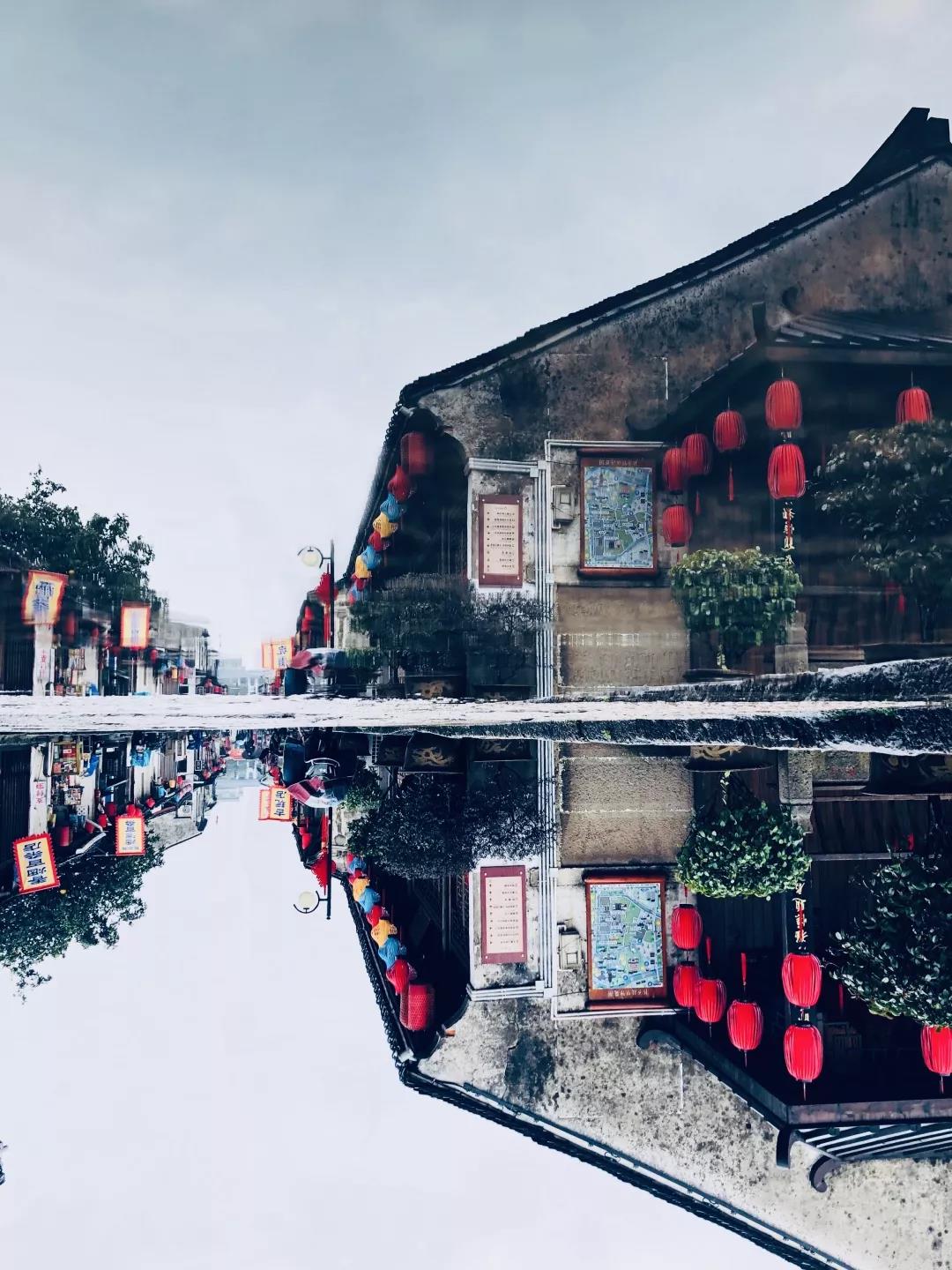 老街兩岸的民宅倒影在水中,輕柔地舞動著,白色與黛色將河水染成了一幅水墨畫,讓河水飽蘸老街的墨味。