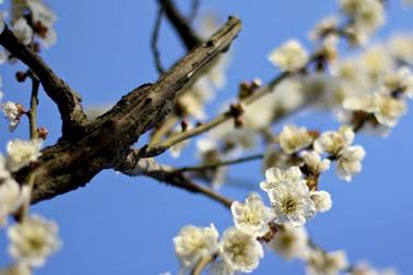 近日氣溫雖偏低,春天的腳步卻依然不動聲色地靠近,或許是聞得春之足音,青梅花始開。禹陵神道兩側(cè)、池邊坡上,都是那潔白的小花,遠(yuǎn)望霜雪壓樹,近看星點紛繁。