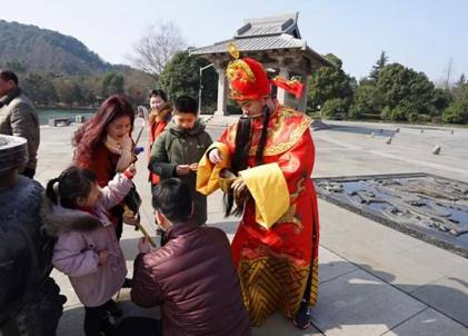 新春假日期間,大禹陵將繼續為游客朋友展現傳統民俗禮儀之美,在享殿中,將每日安排祭祀大禹表演,并且融入互動元素,游客可身著古服,在司儀主持下敬香、敬酒、祝福等,參與到祭祀儀式中。