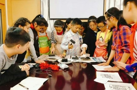 本學期課程于2018年9月12日開班,每周一次,共15次課,每次課程圍繞一個主題,蘭亭景區宣教部的講解員和其他工作人員受邀為同學們講述漢字起源、拓片小知識、中國印刷史、書法小知識、家譜知識等課程,在趣味性地傳授知識的基礎上,配合以拓包制作、金石傳拓、雕版印刷、古籍修復、線裝書制作等互動體驗活動。每一堂課力求以全新的知識點,調動學生積極參與互動、動手實踐操作,而作為參與這門新鮮出爐的校外拓展課的首批學生,16名四到六年級的小學生在每次一個半小時的課堂上都對老師講的內容興致勃勃、認真聽課,在互動環節更是積極踴躍地舉手發言、上臺參加小組活動,課后都對下一次的課程充滿了期待。