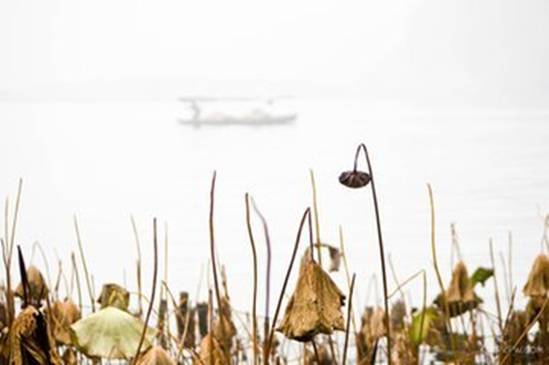 漫步于池邊,仿佛感覺自己正慢慢展開一幅山水畫的舊畫軸,畫中之景是泛黃的、略被剝啄的。駐足池邊細細體味,這一片寒山冬水,竟也因這枯荷之色而顯得溫暖了起來。