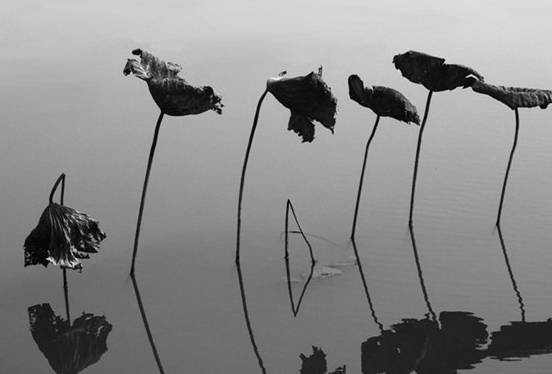 在碧如鏡面的清水映射下,枯荷構成了千姿百態的幾何圖形,像一幅幅精美絕倫的立體畫,令人想起彼埃?蒙德里安的畫作,規則、神秘,而又意境深遠。