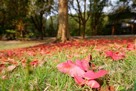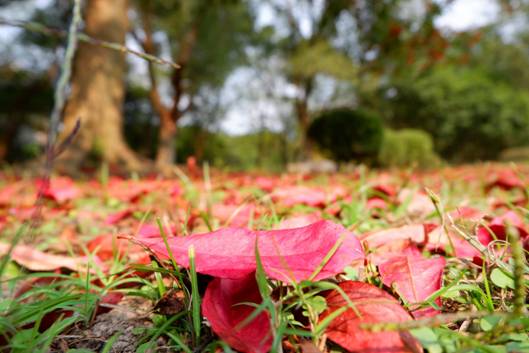 其實,不同品類的葉子下落時的聲響也大相徑庭。竹葉落下的聲音,是輕巧而又細碎的;桂葉則落得干脆,窸窣作響……聽取這些不絕于耳的小聲音,慢慢便有縱浪大化、融入自然之感。