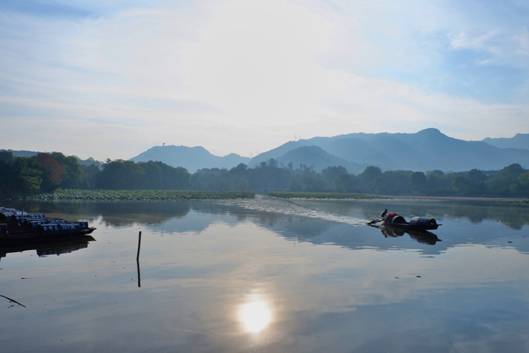 清晨,能看到紅菱池、禹池上蹣跚著一層薄薄的霧靄,令人想到宋詞中那句絕美的“秋色連波,波上寒煙翠”。若是運氣 好的話,還能目睹白鷺翩然飛于林間梢頭的勝景。