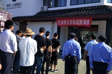 為應對黃金周臨時游客中心接待壓力,培訓員工在突發狀況中的應急能力,9月28日,東湖景區開展高峰期接待應急疏散演練。