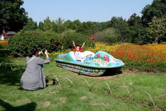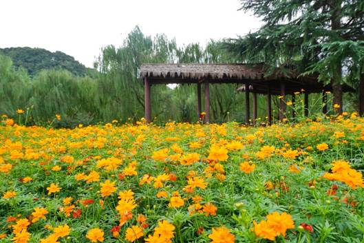 成片的草花,貼近自然,充滿了野趣。金黃色、橙黃色、紅色的菊藝陣隊,遠近交融,高低相攜。使得會稽山腳下原本淡然素雅的秋天,在此刻平添了許多熱情。