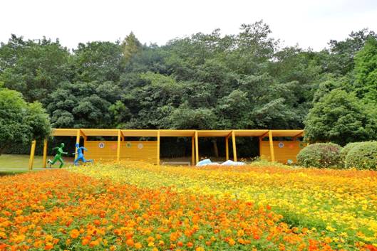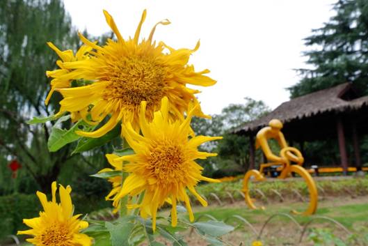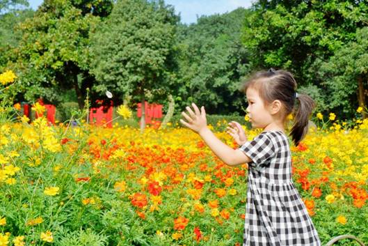 花田間點綴的向日葵、孔雀草、月季等其他花品,更令整個園區顯出多彩多姿的自然氣息。
