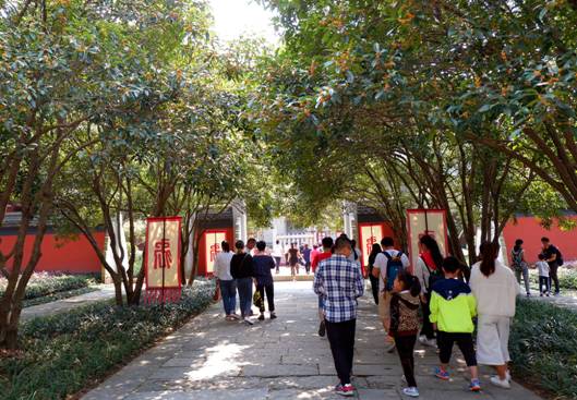 最密集的片區,就屬桂花林了,道路兩側的桂花傾其一世芬芳,游客從這經過,不禁嘖嘖贊嘆:“哇,桂花好香。”