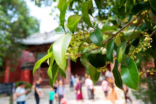 今年大禹陵景區內桂花的盛花期,來得要比往年晚一些。一簇簇密集的桂花,恰巧在這個假期紛沓而來,與來自全國各地的游客在國慶中“香”遇。