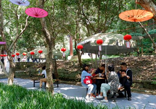 這里古樸清幽,是賞桂的絕佳之地。趁著尚在國慶假期,秋風宜人,未見蕭瑟,不妨邀三五好友坐于桂花樹下,泡上一壺桂花香茶,端上一盤桂花糕,感受假日慢時光。