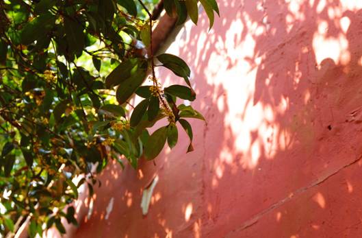 走在桂樹下,零星飄落的桂花,粘在衣服上、發絲上,香味若隱若現,隨著游人一路走遠。