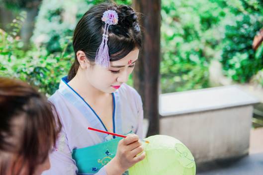 祭祖堂為游客準備了手繪花燈的皺紙材料,及描紅的扇面等,游客可現(xiàn)場觀看書法表演,也可親手體驗這些傳統(tǒng)手工藝,感受一個富有詩意的秋日。