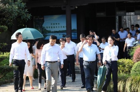 9月5日下午,美高梅酒店集團和中國新城鎮發展公司嘉賓周鋒副總裁一行至東湖景區調研考察,市領導馬衛光等陪同考察。 期間,周鋒一行簡單了解了景區運營接待情況,現場體驗了景區烏篷船、水上婚俗、社戲演藝等特色活動;并對景區內即將運營的特色酒店項目、景區游客中心酒店大堂互為融合提升的做法表示了肯定與贊許。