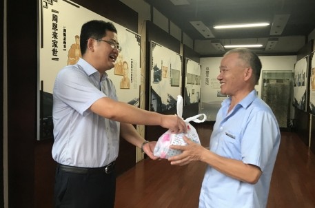 入伏以來,連續高溫,熱浪滾滾,集團下屬各景區一線員工冒著酷暑堅守在自己的崗位上,用自己的辛勤汗水,換來景區優美整潔的旅游環境。8月5日下午,紹興市文旅集團總經理胡華良、副總經理沈偉慶頂著驕陽來到周恩來紀念館慰問一線員工,給員工帶來一聲清涼的問候。 在慰問過程中,集團領導向員工了解日常工作情況,提醒員工在高溫天氣持續不斷的情況下,務必做好防暑降溫工作,確保自己的安全,并送上了防暑降溫物品。員工們也紛紛表示,一定會堅守崗位,努力把接待工作做得更好。