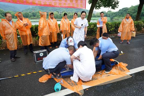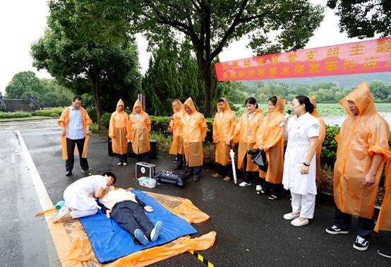 急救講解。紹興市文理附屬醫(yī)院ICU護士長及120急救分站站長現(xiàn)場講解、演示如何搶救溺水者。