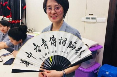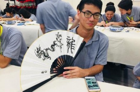 大陸、臺(tái)灣一衣帶水、血脈相連,兩岸同胞同宗同族有著相同的傳統(tǒng)文化背景,而書法,也是許多臺(tái)灣學(xué)生自小學(xué)以來就開始研習(xí)的傳統(tǒng)國學(xué)課程,蘭亭,作為祖國書法文化的發(fā)源圣地,必將承擔(dān)起書法文化弘揚(yáng)及傳承的教育使命。本次活動(dòng),景區(qū)特邀浙江省工藝美術(shù)大師、浙江省書法家協(xié)會(huì)會(huì)員王仲章老師,結(jié)合景區(qū)特色書法研學(xué)活動(dòng)項(xiàng)目扇面寫字,針對(duì)扇面書法發(fā)展簡史、扇面寫字布局、扇面寫字技巧運(yùn)用、扇面裝裱等為同學(xué)們開講了一堂專業(yè)而生動(dòng)的書法課。同學(xué)們紛紛在現(xiàn)場(chǎng)揮毫潑墨,寫下以“龍脈相傳 青春中華”為主題的扇面作品,將本次臺(tái)灣大學(xué)生夏令營在蘭亭的活動(dòng)推向了高潮。