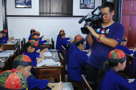今天上午10點,紹興電視臺新聞綜合頻道來到魯迅故里三味書屋采訪全新升級的研學游活動。攝制組一行人采訪了研學游講解員,現場觀摩了“三味私塾體驗課”教學活動,深入了解了研學游的流程和亮點。