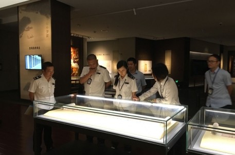7月3日上午,紹興市文化市場(chǎng)行政執(zhí)法支隊(duì)一行三人到蘭亭景區(qū)開(kāi)展文物安全專(zhuān)項(xiàng)檢查,景區(qū)安全工作分管領(lǐng)導(dǎo)、安全員等陪同。檢查組通過(guò)當(dāng)面詢(xún)問(wèn)、實(shí)地查勘等方式,先后走訪(fǎng)了書(shū)法博物館及核心文保區(qū)域,就博物館館藏文物的日常巡查、維護(hù)等基本情況,以及展陳文物進(jìn)行了實(shí)地查勘,并要求相關(guān)負(fù)責(zé)人高度重視,責(zé)任到位,確保文物及展品安全。