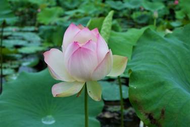 “清水出芙蓉,天然去雕飾。”清晨的雨露浮在荷塘里,如籠罩著輕紗的幽夢。撫著輕舟而去,令人恍如置身清涼之境。