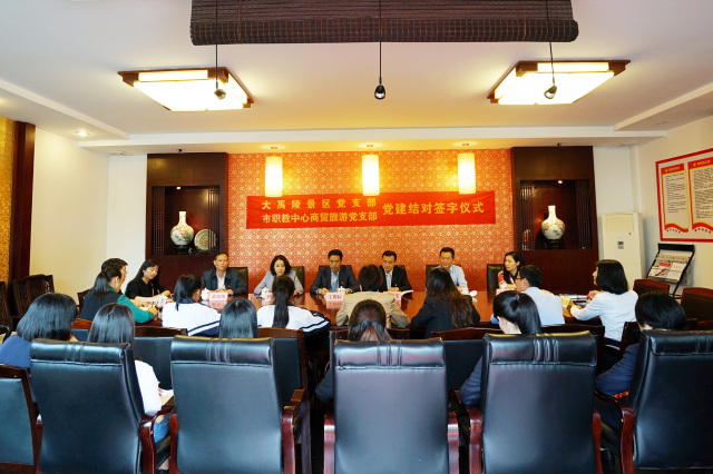 雙方支部就如何更好地開展基層黨建工作,如何完善景區文化旅游資源與學校資源共享互進等方面進行洽談交流。