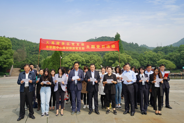 儀式由大禹陵景區黨支部呂濟軍書記主持,市文旅集團黨委委員、副總經理唐易宏代表集團黨委出席并對結對共建表示祝賀,市教育局政治處尹瑩,市職教中心黨委書記、副校長王國標就支部結對共建給予指導。